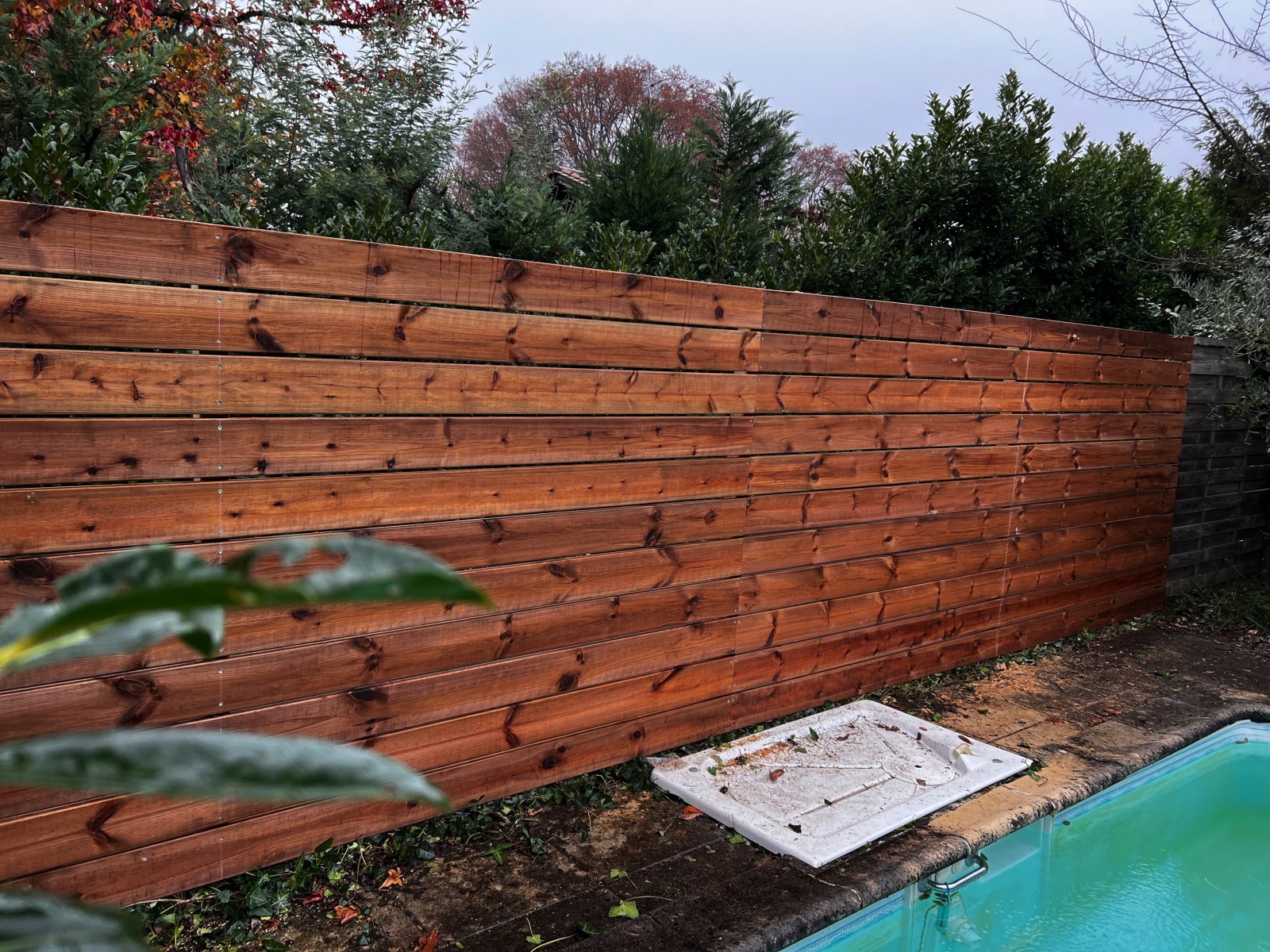 clôture en pin classe 4 au bord d'une piscine pour ce protéger des regards a bruges