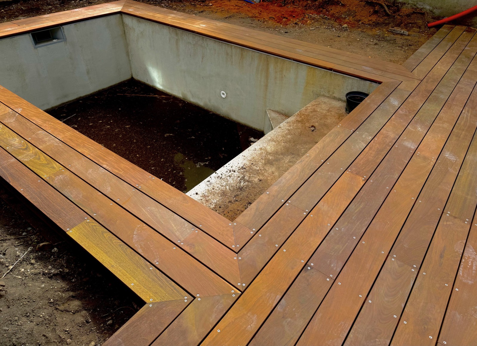 terrasse original en bois exotique ipé de 40m2 à bordeaux centre autour d’une piscine
